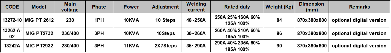 • MIG PT2612/ PT2732/ PT2932